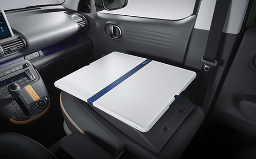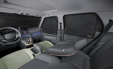 선택품목 ‘스토리지’에 포함되는 동승석 시트백 보드 트레이에 연결하여 사용할 수 있는 실내 테이블이다. 접이식으로 이동과 보관이 편리하다. 선택품목 ‘스토리지’ 적용이 필수이며, 동승석 시트백 보드 테이블을 동승석 시트백 보드에 장착 시 동승석 시트백 보드 트레이가 먼저 장착된 상태에서 장착할 수 있다.