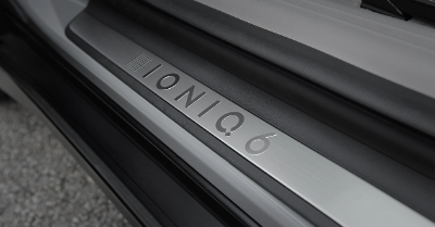 아이오닉 6 롱레인지 프레스티지 트림 내장은 메탈 페달, 메탈 도어스커프가 추가 적용된다.