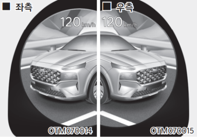 후측방 모니터는 방향지시등 조작과 연동하여 차선 변경 시 아웃사이드 미러의 사각지대 영역을 대폭 개선한 사각 지역 영상을 클러스터에 표시하여 시각적 안전운행을 보조하는 시스템이다.
