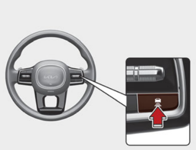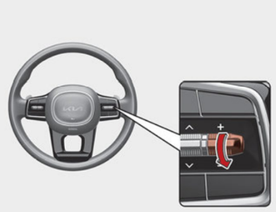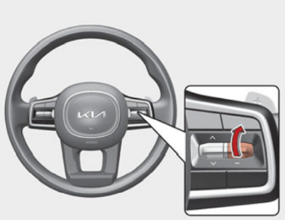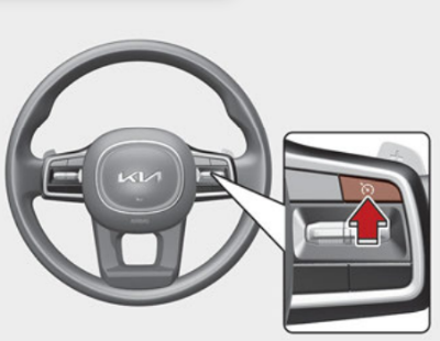 아래 그림의 스티어링 휠에 위치한 차간거리 버튼을 누를 때마다 차간거리가 변경된다. 4단계 → 3단계 → 2단계 → 1단계 → 4단계