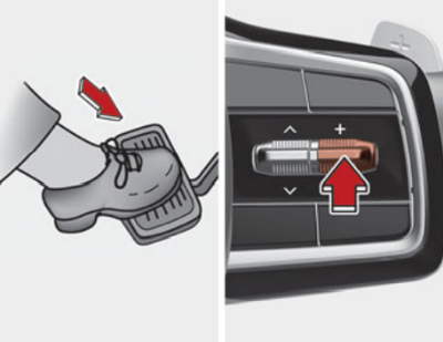 스티어링 휠에 위치한 + 스위치를 짧게 올릴 경우 약 1km/h씩 설정속도가 증가된다. + 스위치를 길게 올릴 경우 10의 배수로 설정속도가 증가된다. 속도는 약 180km/h까지만 설정 가능하다.