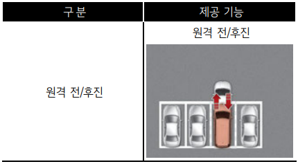 원격 전/후진 기능은 스마트 키를 이용하여 차량 밖에서 원격으로 작동할 수 있으며, 원격 스마트 주차 보조가 작동하면 주차 거리 경고, 후방 모니터, 서라운드 뷰 모니터가 함께 작동한다.