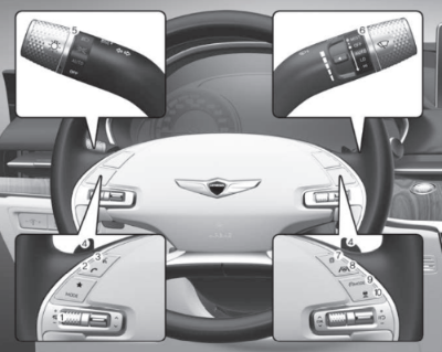 스마트 크루즈 컨트롤 기능 작동 시 차간거리 버튼을 이용하여 앞 차와의 간격을 조절할 수 있다. 버튼을 누를 때마다 4단계 → 3단계 → 2단계 → 1단계 → 4단계 순으로 변경된다.