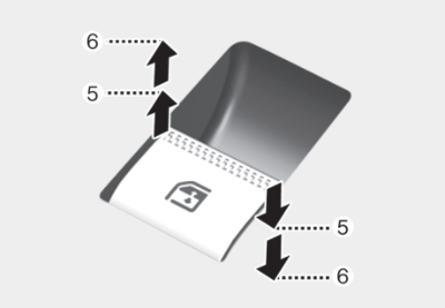 좌석별 유리창 열림/닫힘 스위치를 첫 번째 걸리는 위치(5)까지 누르면 해당 유리창이 열리고 당기면 유리창이 닫힙니다.