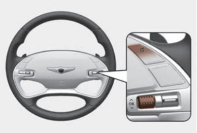 스티어링 휠 좌측 뒤편에 위치해 있는 위치 조절 버튼으로 스티어링 휠의 위치를 조절할 수 있습니다. 버튼을 통해 위 / 아래, 전 / 후로 조절 가능합니다.