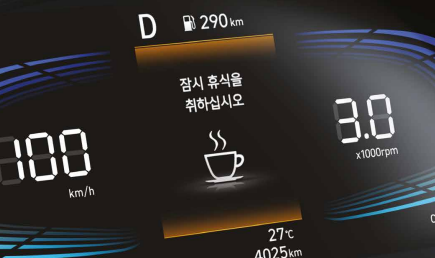 * 운전자 주의 경고 : 주행 중 운전자의 주의 운전 상태를 표시해주며, 운전자 주의 수준이 "나쁨"으로 떨어지면 경고를 해준다.