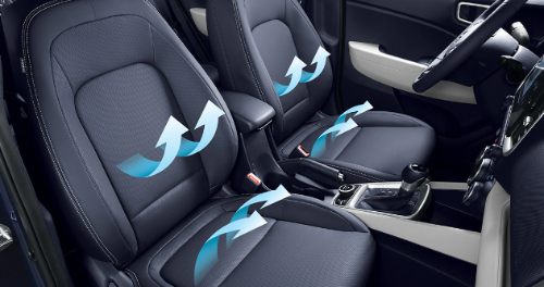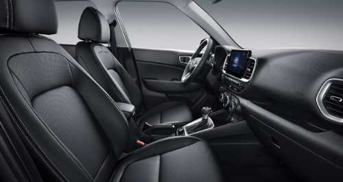 베뉴 시트는 인조 가죽 시트, 앞좌석 열선 시트, 앞좌석 통풍 시트, 동승석 시트백 포켓, 운전석 수동 높이 조절, 2열 6:4 폴딩 기능이 기본 적용된다.