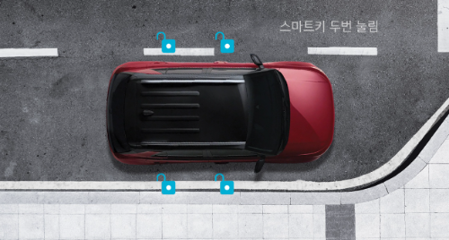 * 세이프티 언락 기능 : 도어언락 버튼 1회 작동 시 운전석만 열리고, 2회 작동 시에는 전 좌석이 오픈될 수 있도록 설정 가능하다. 세이프티 언락 기능은 차량 범죄 예방 효과가 있다.