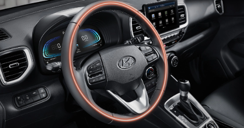 베뉴 프리미엄 트림은 가죽 스티어링 휠(열선 포함), 가죽 변속기 노브, 4.2인치 컬러 LCD 클러스터, 선바이저 거울 & 조명, 메탈 페인트 인사이드 도어 핸들, 2단 러기지 보드가 기본 적용된다.