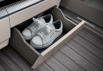 2열 전면부에 냉온장고가 설치되어 음료를 시원하게 또는 따뜻하게 보관할 수 있습니다. 또한 소품, 신발 등 다양한 물품을 보관할 수 있는 수납함이 2열 전면부에 위치하여 편의성을 극대화했습니다.