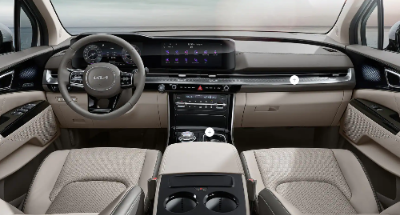카니발 하이리무진 편의 기능으로 빌트인 공기청정기, 후석 LED 독서등, 주름식 커튼, 21.5인치 스마트 모니터가 추가 적용됩니다.