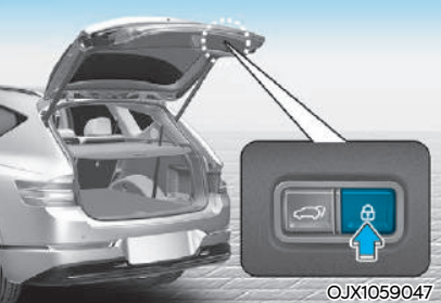 테일게이트가 닫힌 상태에서 버튼을 누르면 경고음과 함께 테일게이트가 열립니다. 차량이 잠긴 상태에서 테일게이트를 열려면 스마트 키를 휴대하고 버튼을 누르면 됩니다. 이때 테일게이트가 잠겨 있지 않은 상태라면 스마트 키를 휴대하지 않아도 버튼을 누르면 경고음과 함께 테일게이트가 열리게 됩니다.