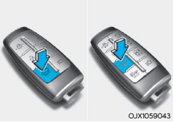스마트 키를 휴대한 상태에서 위의 자물쇠 그림의 버튼을 누르면 경고음과 함께 테일게이트가 닫히고, 모든 도어가 잠깁니다. 모든 도어가 닫혀 있고, 시동 OFF 상태인 경우에만 버튼을 사용하여 테일게이트를 닫고, 모든 도어를 잠글 수 있습니다.