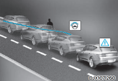운전자 조향 보조 기능은 차로 내 전방의 차량, 보행자 및 자전거 탑승자 와의 충돌 위험이 판단되어 경고가 발생할 경우 운전자가 충돌을 피하기 위해 스티어링 휠을 조작하면 조향을 돕습니다.