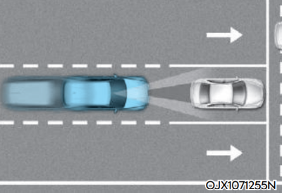 측방 접근차 대응 기능은 차로 변경 시 옆 차로의 선행 차량과의 충돌 위험이 판단되면 충돌하지 않도록 조향을 돕습니다.
