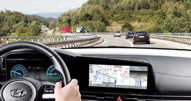 또한 내비게이션 기반 스마트 크루즈 컨트롤은 곡 선구간, 안전구간에서 자동으로 속도를 줄여 안전하게 주행할 수 있도록 돕는 스마트 크루즈 컨트롤 기능이다. 고속도로 등을 이용하여 장거리 주행 시 운전자의 피로감을 줄여준다.