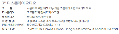 7인치 디스플레이 오디오와 9.3인치 내비게이션은 그 기능의 큰 차이가 있기 때문에 편의성 향상을 위해서는 위 2가지 옵션 중 1개는 반드시 추가하는 것이 좋다.