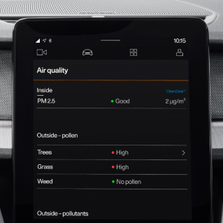 폴스타 2 플러스 패키지 선택 시 에어퀄리티 시스템이 적용되어 내부 공기를 신선하고 깨끗하게 유지해준다. 외부의 오염 물질을 감지하여 실내 공기로 유입되는 것을 막고 실내 공기 상태를 쾌적하게 유지한다.