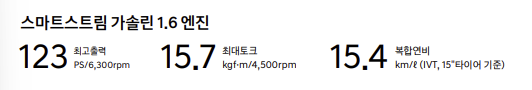 | 가솔린 1.6 | 가솔린 1.6 하이브리드 | |