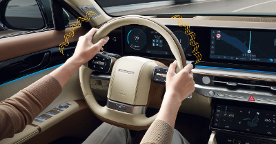 진동경고 스티어링 휠은 주행 및 주차 시 안전/편의 시스템에 의한 경고를 스티어링 휠의 진동을 통해 운전자에게 전달하여 바로 인지하고 반응할 수 있도록 돕는 편의 기능입니다.