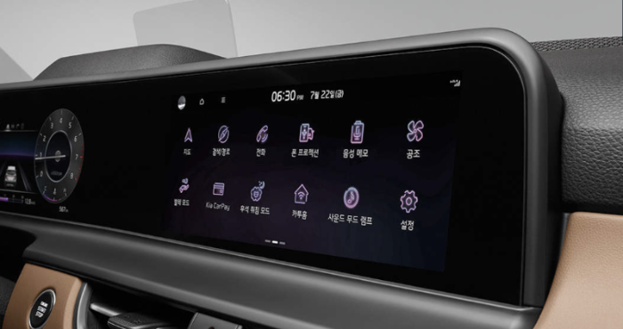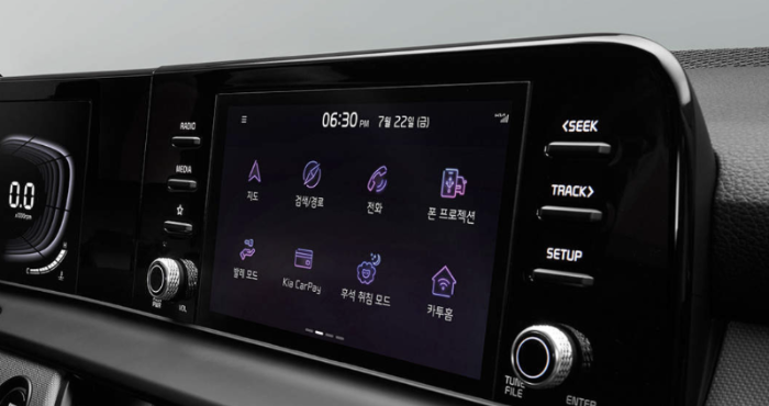 다만 10.25인치 내비게이션에 비해 작은 8인치 화면이 적용되고, 기아 카페이, 기아 커넥트 기능을 사용할 수 없다는 단점이 있습니다.