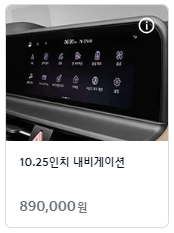 트렌디 트림은 컨비니언스 옵션을 선택해야 10.25인치 내비게이션 옵션을 추가할 수 있습니다.