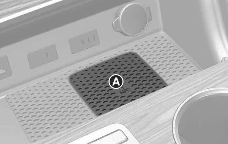 스마트폰의 NFC 안테나를 실내 인증 패드 (무선 충전 패드) 중앙에 올린 후 브레이크 페달을 밟고 시동 버튼을 눌러 시동을 걸 수 있습니다.