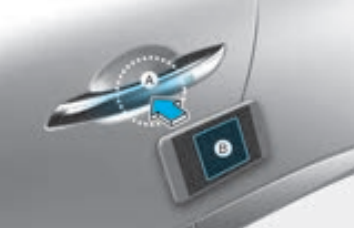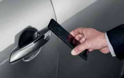스마트폰 뒷면의 NFC 안테나를 운전석 / 동승석 도어 핸들 인증 패드 중앙에 2초 이상 접촉하면 도어 잠금 및 잠금이 해제됩니다. 도어 잠금 해제 후 30초 이내에 문을 열지 않으면 문은 자동으로 닫히게 된다. 만약, 디지털 키가 작동하지 않을 경우 핸들 인증 패드로부터 10cm 이상 떨어뜨린 후 다시 접촉을 시도합니다.