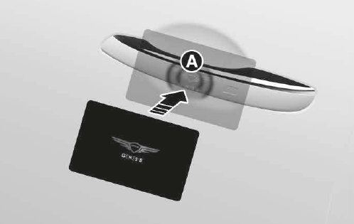등록된 NFC 카드 키를 실내 인증 패드(무선 충전 패드) 중앙에 올려놓은 후 브레이크 페달을 밟고 시동 버튼을 눌러 시동을 걸 수 있습니다.