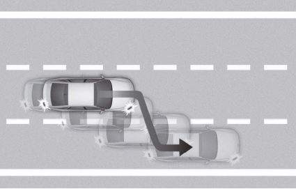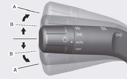 운전자가 방향지시등 스위치 위치를 위 사진의 A 또는 B에 위치시키면, 후측방 차량을 인식하여 차선을 자동으로 변경합니다.