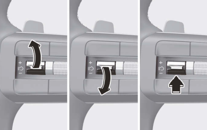 '+ 스위치'를 짧게 올리면 설정 속도가 1km/h 단위로 증가합니다. 설정 속도를 빠르게 높이려면 '+ 스위치'를 2초 이상 길게 올려 설정속도를 10의 배수로 증가시킬 수 있습니다. 속도는 최대 200km/h까지 설정할 수 있습니다.