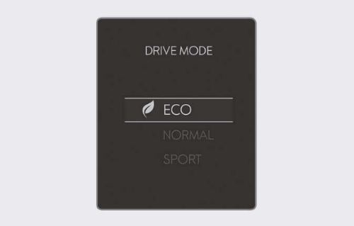 드라이브 모드는 NORMAL, ECO, SPORT, SNOW 모드 중 선택 가능하다. SNOW 모드는 4WD 사륜구동 옵션 선택 시 사용 가능하다.