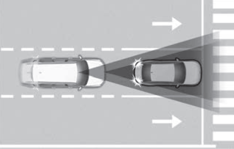 후방 교차 충돌 경고는 후측방 충돌방지 보조 기능과 동일하게 후측방 레이더를 활용하여 후측방에서 접근하는 차량을 감지하여 작동합니다.