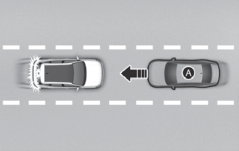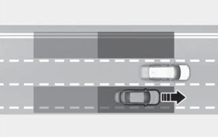 레이다에 후측방 차량을 감지하여 운전자에게 경고한 후에도 차량이 계속 움직이면 자동으로 제동을 도와 충돌을 방지하는 기능이다.