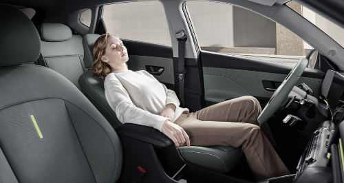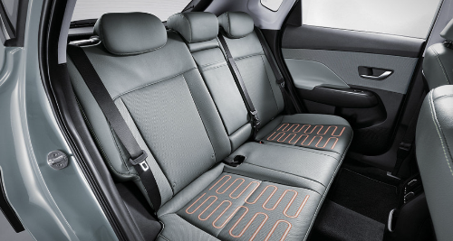 2023 디올뉴 코나 인스퍼레이션 트림 시트는 천연 가죽 시트, 운전석 자세 메모리 시스템, 동승석 8 way 전동시트, 동승석 워크인 디바이스, 1열 릴렉션 컴포트 시트, 뒷좌석 열선시트가 적용된다.