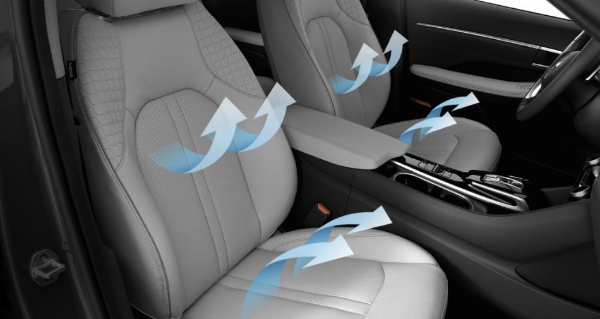 시동이 걸린 상태에서 해당 좌석의 통풍 스위치를 누르면 표시등이 켜지면서 해당 좌석에 바람이 나오는 편의장치입니다.