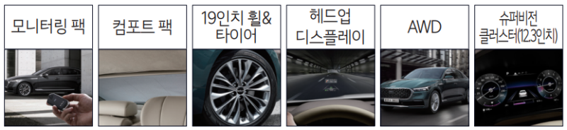 다만, 최하위 플래티넘 트림 선택 시 12.3인치 슈퍼비전 클러스터는 옵션을 통해 추가할 수 없어 7인치 슈퍼비전 클러스터를 사용해야 한다. 만약 12.3인치 슈퍼비전 클러스터를 사용하고 싶은 운전자라면 반드시 플래티넘 베스트 셀렉션 1 또는 마스터즈 트림을 선택해야 한다.