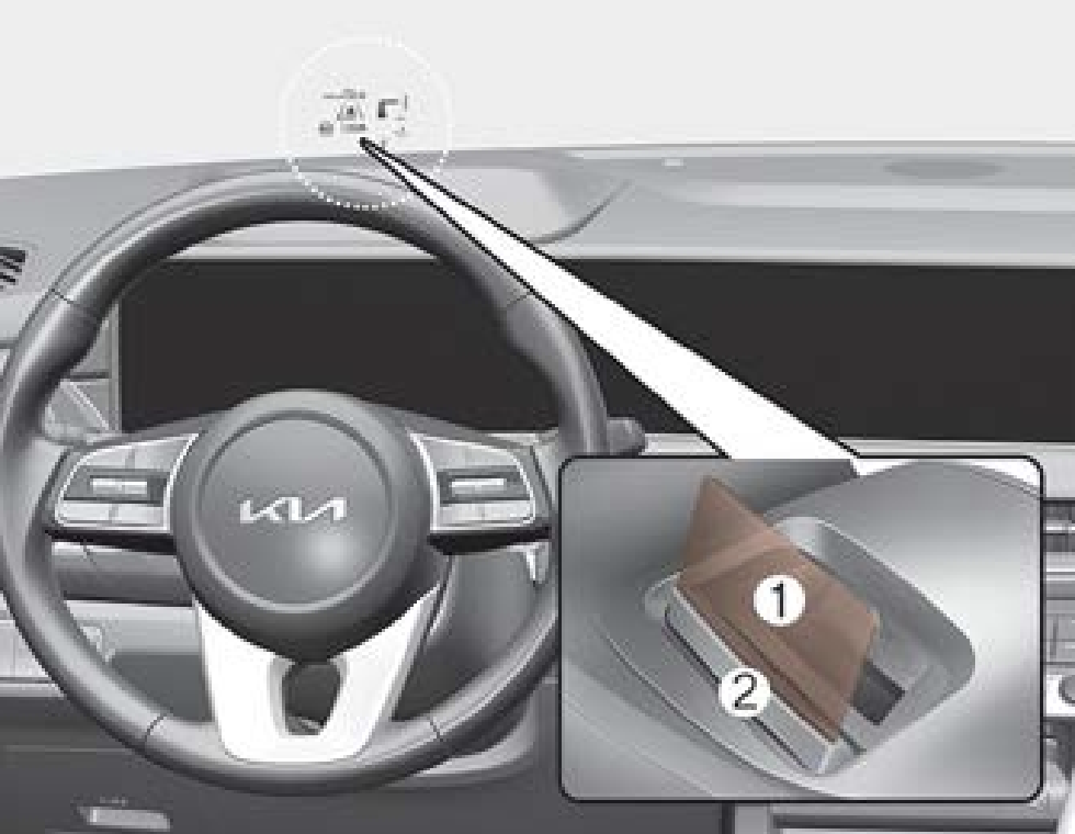 시동이 꺼진 상태에서 스마트키로 도어 잠금 시 헤드업 디스플레이가 자동으로 닫힙니다. 시동이 꺼진 상태에서 도어가 잠기지 않더라도 약 5분 후 헤드업 디스플레이가 자동으로 닫힙니다.