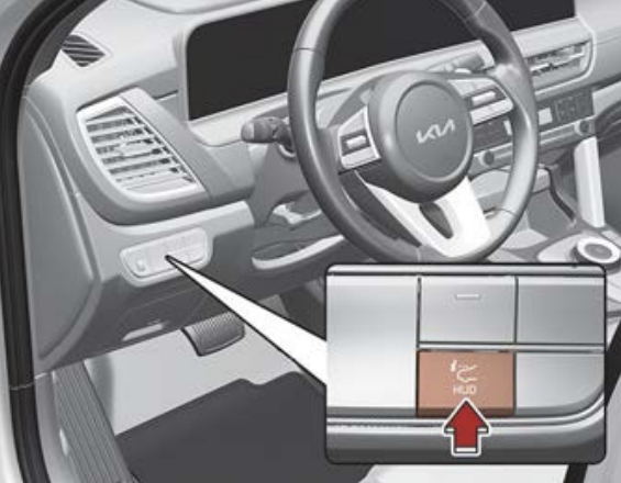 시동이 켜진 상태에서 크래쉬패드 하단의 왼쪽에 있는 헤드업 디스플레이 조작 스위치를 누르면 숨겨진 화면이 올라가고 스위치를 다시 누르면 원래의 숨겨진 위치로 돌아갑니다.