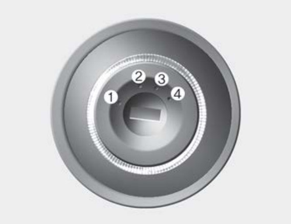 시동을 걸기 위해서는 무선 폴딩 키를 꽂아 사용합니다. 엔진 시동을 켜고자 할 때 무선 폴딩 키를 꽂은 상태에서 시동 스위치를 ④ Start 위치까지 돌리면 됩니다. 시동이 걸리면 키에서 손을 뗍니다. 키에서 손을 떼면 시동 스위치는 자동으로 ③ On 위치로 되돌아갑니다.