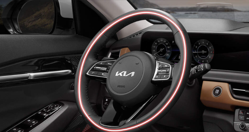 2023 셀토스 트렌디 트림은 우레탄 재질의 스티어링 휠이 적용되며, 컨비니언스 옵션을 추가할 경우 인조 가죽으로 스티어링 휠을 감싸 고급스러운 분위기를 연출합니다.