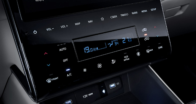 2023 투싼 프리미엄 및 인스퍼레이션 트림은 듀얼 풀오토 에어컨이 기본 적용되며, 모던 트림 선택 후 멀티미디어 내비 1 옵션을 선택하면 듀얼 풀오토 에어컨이 적용된다.