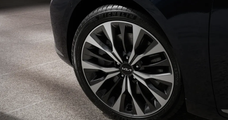 기아자동차 K8 시그니처 트림은 18인치 미쉐린 타이어 & 전면 가공 휠이 적용되며, 시그니처 스페셜 트림 선택 시 19인치 미쉐린 타이어 & 다크 스퍼터링 휠로 변경 적용된다.