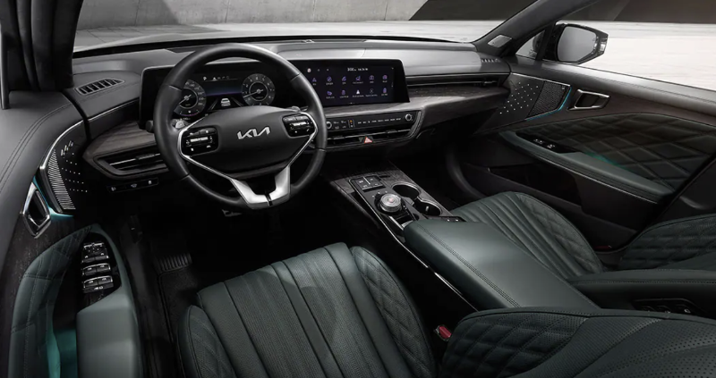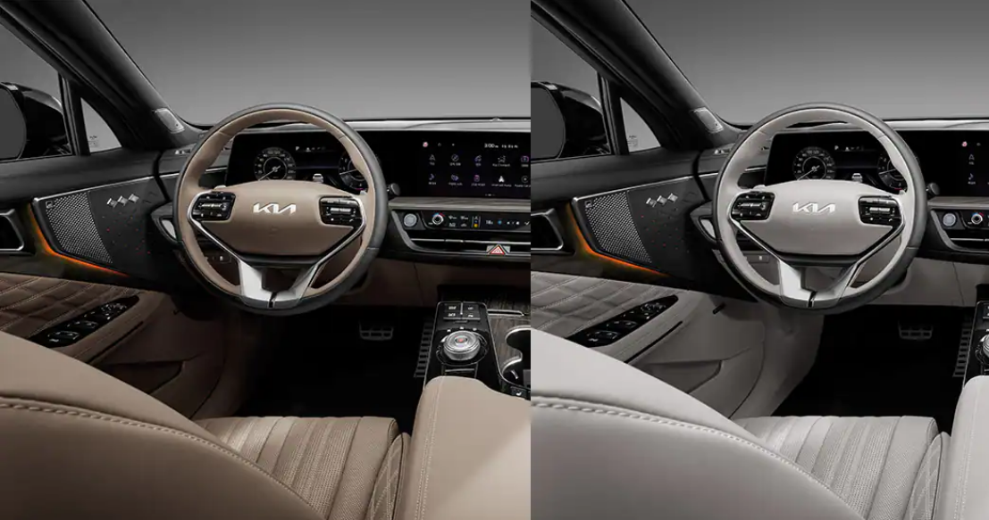 K8 시그니처 스페셜 트림은 딥 그린 인테리어 및 브라운 투톤 인테리어가 적용되어 고급스러운 실내 분위기를 구현했다. 시그니처 트림에서 선택할 수 없는 딥 그린 인테리어는 다른 컬러에 비해 고급스러움이 돋보인다.