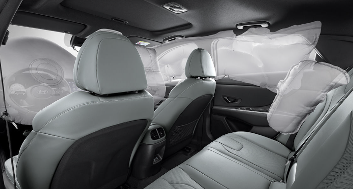 2022 아반떼는 6 에어백이 적용되나 2023 아반떼에는 2열 사이드 양쪽에도 에어백이 설치되어 8개의 에어백이 적용됩니다.
