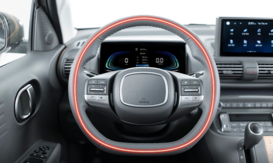 캐스퍼 스마트 트림의 경우 우레탄 재질의 스티어링 휠이 적용되지만, 디 에센셜 라이트 트림을 선택하면 우레탄 재질의 스티어링 휠이 가죽으로 변경 적용됩니다.