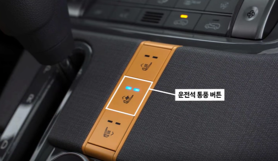좌석의 착좌부 및 등받이 부분에서 바람이 나오는 기능으로 여름철과 같은 더운 날, 쾌적한 드라이빙이 가능하도록 돕습니다. 여름철 운전을 하다 보면 에어컨을 틀어도 등이나 허벅지 부분에 땀이 날 수 있습니다. 이때 통풍 시트를 활용하면 매우 유용합니다.