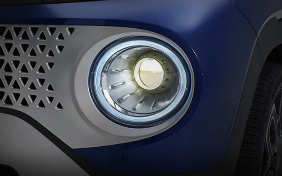 프로젝션 헤드램프는 방향지시등과 분리된 아이코닉 원형 디자인의 DRL을 적용한 헤드램프로 아이캐칭 효과는 물론, 캐스퍼만의 유니크한 프론트 마스크를 구현했다. DRL(Daytime Running Lights, 주간주행등)은 낮시간에도 자동으로 켜져 다른 사람들이 차량을 쉽게 인지할 수 있도록 하는 램프입니다.