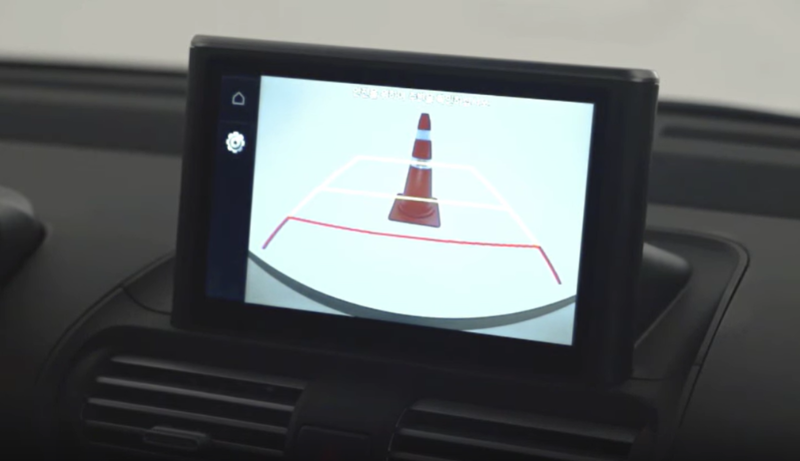 주차 시 후방 상황을 영상으로 보여준다. 광각-후방 카메라를 이용하여 후방 영상 및 고정/조향 가이드라인을 보여줍니다.