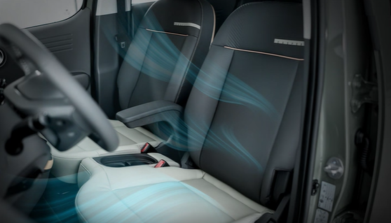 2023 캐스퍼 디 에센셜 라이트 트림을 선택하면 운전석에 통풍 시트가 적용됩니다. 통풍 시트는 시동이 걸린 상태에서 해당 좌석의 통풍 스위치를 누르면 표시등이 켜지면서 해당 좌석에 바람이 나오는 편의장치입니다.